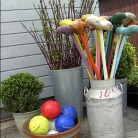 Op de baan spelen twee groepen tegen elkaar van max. 5 personen per groep. Groep 1 slaat de bal vanaf het afslag punt en vervolgens groep 2. De bal die dan het verst van de put verwijderd is, is vervolgens aan slag.